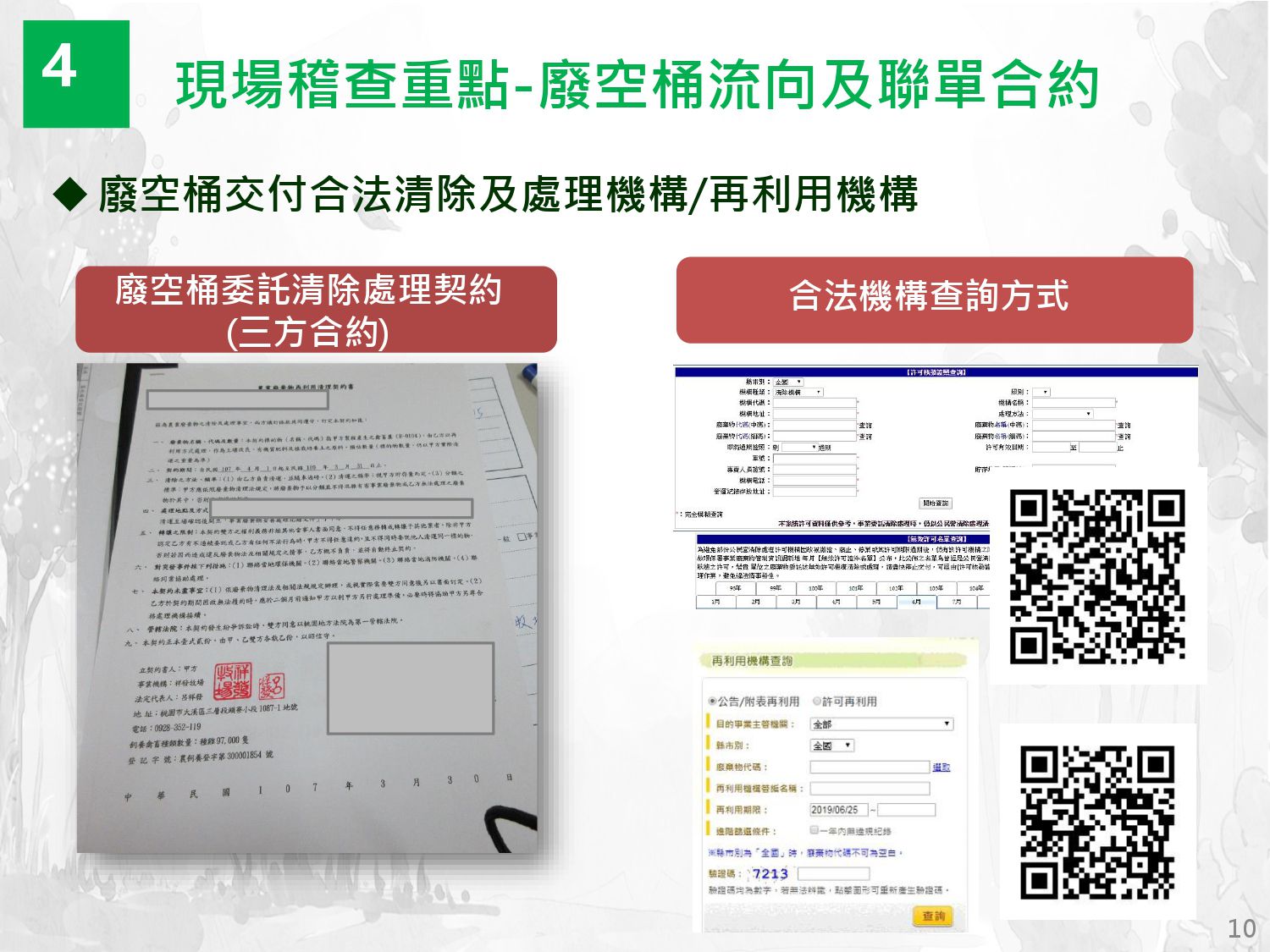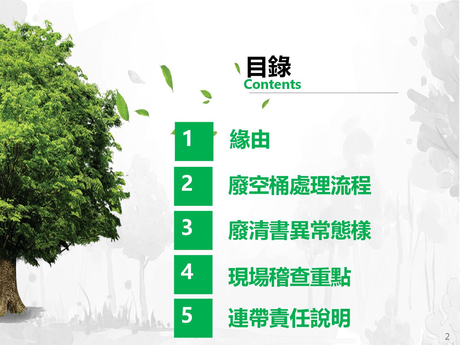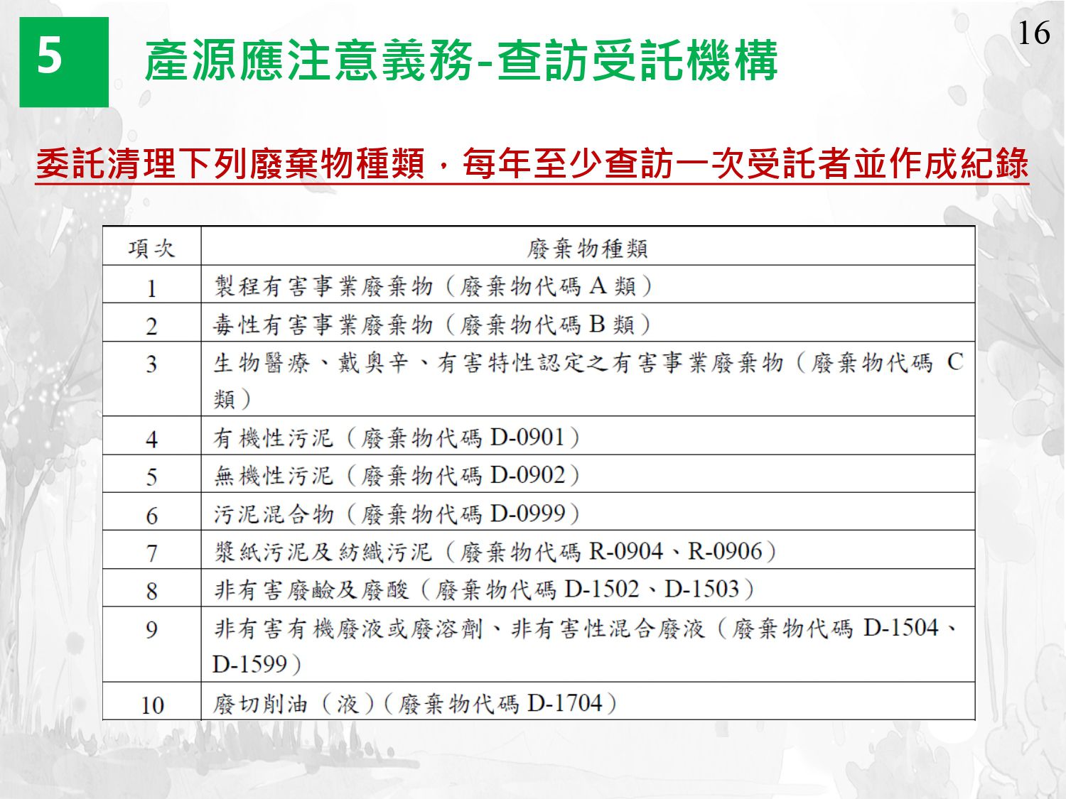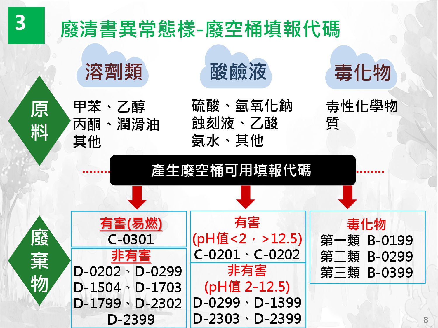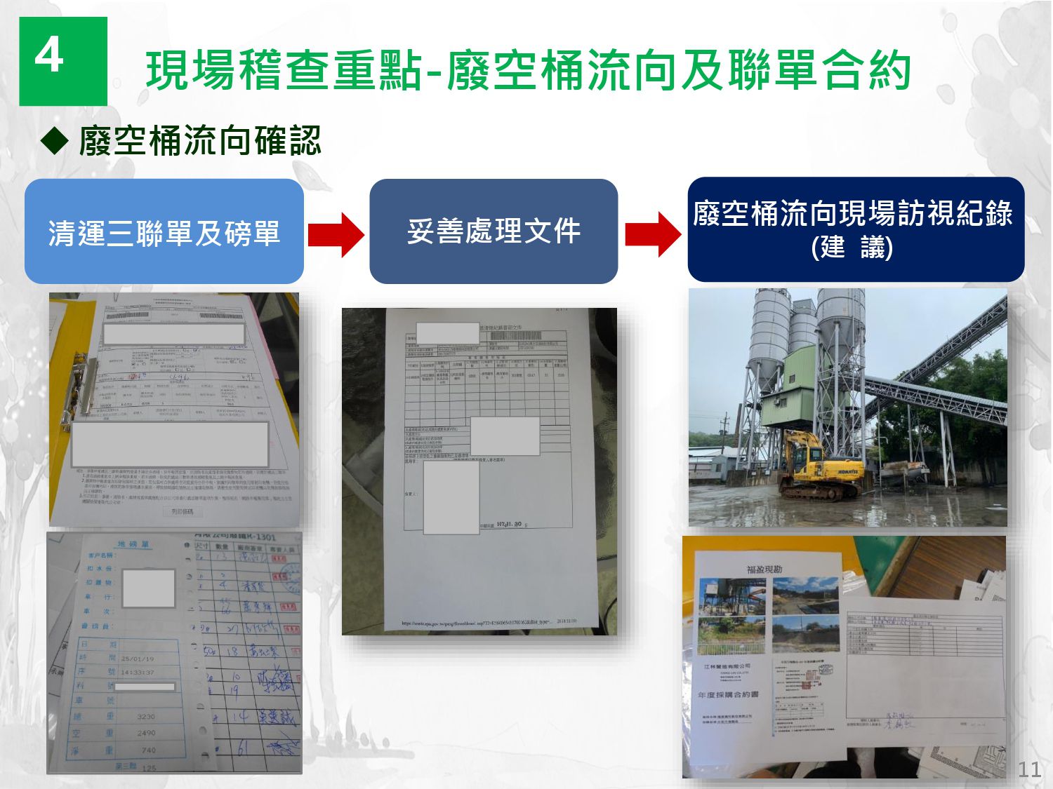 文章引用自:https://www.tydep.gov.tw/tydep/Content/Upload/Events/0712-現場稽查重點及廢清書異常態樣.pdf